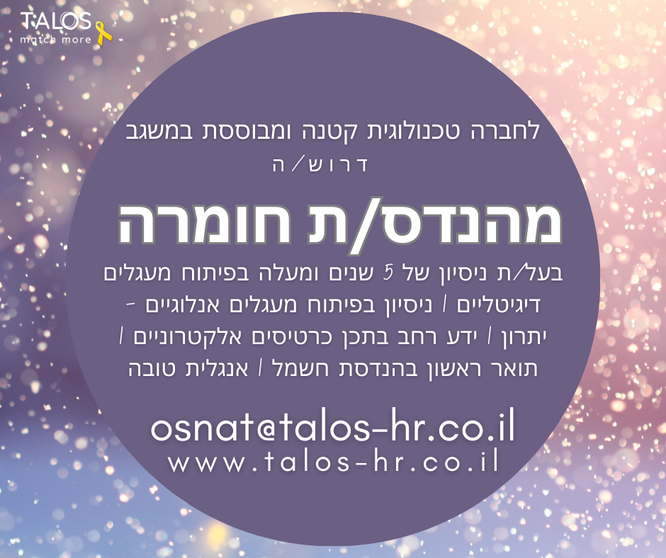 הנדסת תעו"נ, פיתוח עסקי Sales Operations לחברה טכנולוגית קטנה ומבוססת, הממוקמת במשגב, דרוש/ה sales operations specialist – יד ימינו של סמנכ"ל שיווק ומכירות בחברה. התפקיד קראו עוד משגב