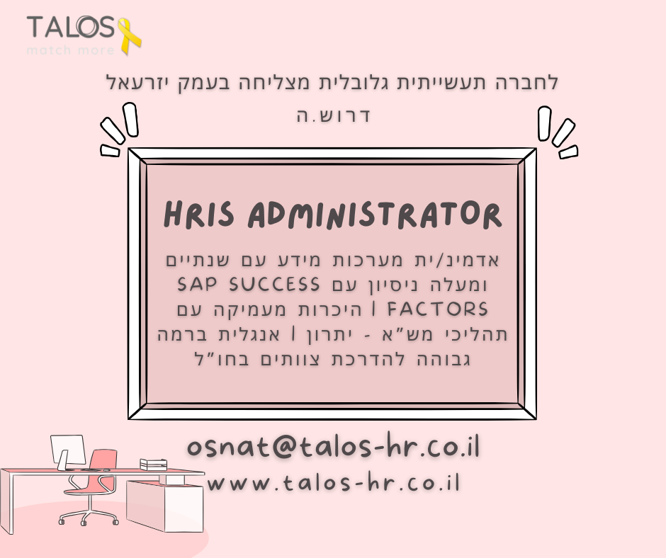 לחברה תעשייתית גלובלית, מובילה בתחומה ומבוססת, הממוקמת בעמק יזרעאל, דרוש.ה אחראי/ת מערכות מידע למחלקת מש"א ובכפיפות לסמנכ"לית מש"א גלובלית. התפקיד